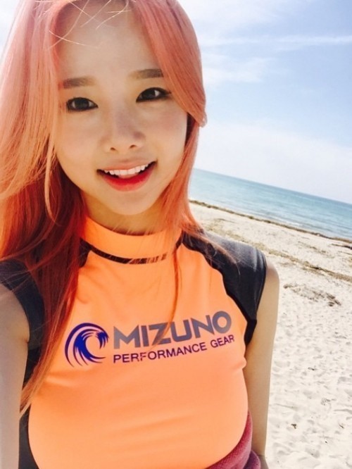 사진 속 솔지는 해변가에 서 카메라를 향해 청초한 미소를 짓고 있다. 특히 그는 수영복을 입고 있지만 볼륨감 넘치는 가슴 라인이 눈길을 사로잡았다.