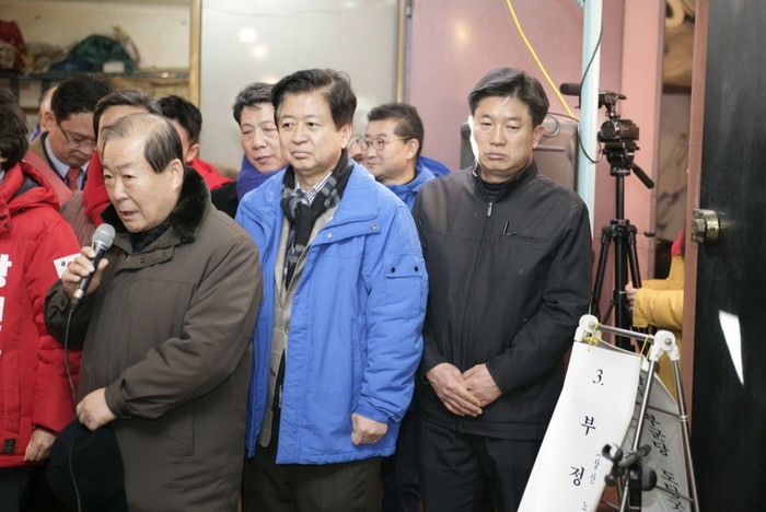 지난 9일 오전 박홍섭 마포구청장(왼쪽에서 두 번째)이 마포구 창전동 소재 부군당에서 마을의 안녕과 번영을 기원하며 열린 '밤섬 부군당제'에 참석해 인사말을 하고 있다.(사진제공=마포구청)