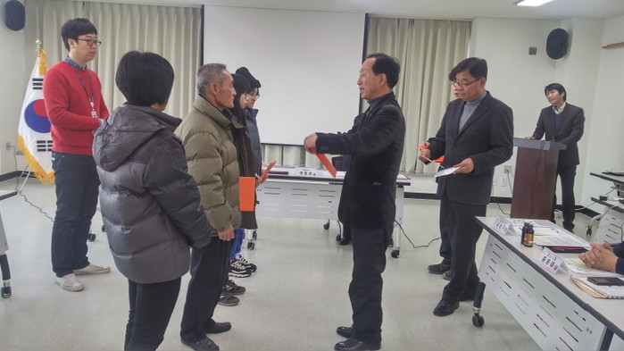 최근 경기 화성시 비봉면 이장단협의회는 비봉면사무소 3층 회의실에서 지역내에 거주하는 중·고등학생 4명에게 장학금 200만원을 전달했다. 사진은 장학금 수여식이 진행되는 모습.(사진제공=화성시청)