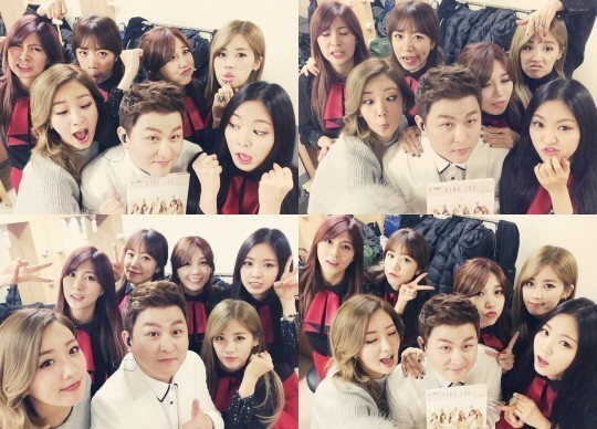 공개된 속 에이핑크 멤버들은 대기실로 보이는 곳에서 허각을 둘러싸고 친분을 과시하는 다정한 포즈를 취하고 있다. 특히 다소 엽기적인 표정을 지으며 '외모 몰아주기'를 한 사진은 보는 이들의 웃음을 자아낸다.