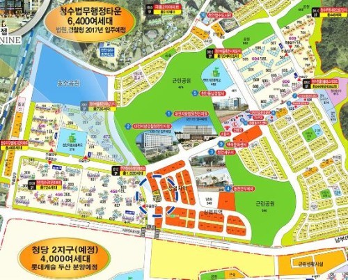 특히 청수택지지구는 지역 첫 법조행정타운 개발 등 굵직한 대형 개발 호재가 몰린 지역으로 청당동, 청수동, 삼룡동 일대에 수용가구 6398가구, 상주인구 2만444명과 11개의 행정기관들이 입주하는 곳이다.