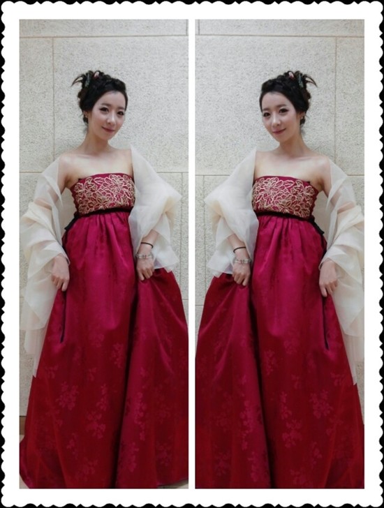 사진 속 안소미는 가슴에 화려한 수가 놓여진 붉은 한복과 속이 비치는 저고리를 입어 고혹적인 매력은 뿜어냈다.