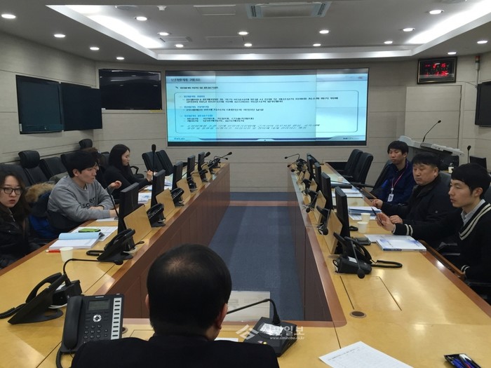 16일 경기 동두천시는 시청 재난종합상황실에서 각동 민방위 담당자를 대상으로 민방위 분야 시스템 사용자 교육을 진행했다. 사진은 교육에 참석한 관계자들이 회의를 하는 모습.(사진제공=동두천시청)