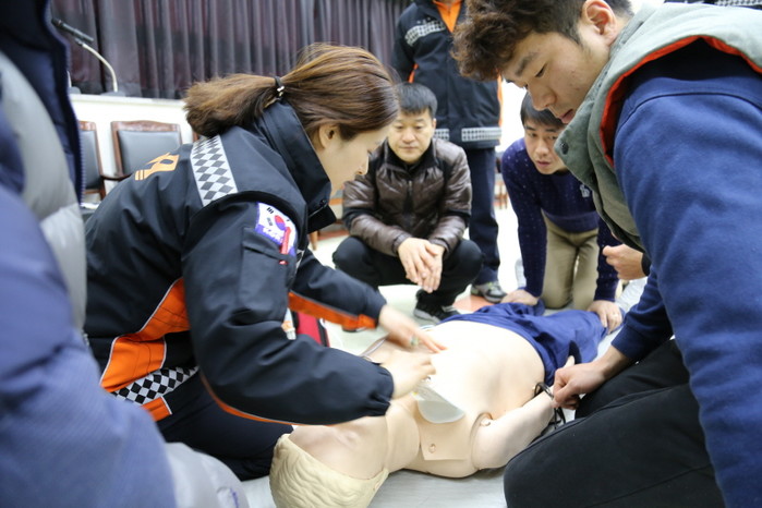 16일 경기 여주소방서는 3층 대회의실에서 펌뷸런스(소방펌프차(Pump)와 구급차(Ambulance)의 합성어) 운영요원 29명을 대상으로 심폐소생술 등 구급품질 향상 교육을 실시했다.(사진제공=여주소방서)