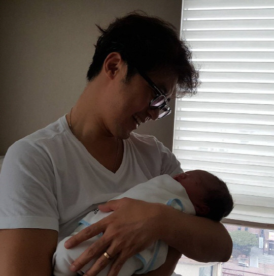 사진에는 안재욱이 갓 태어난 딸을 품에 안고 행복한 미소를 짓고 있는 모습이 담겨 있다.