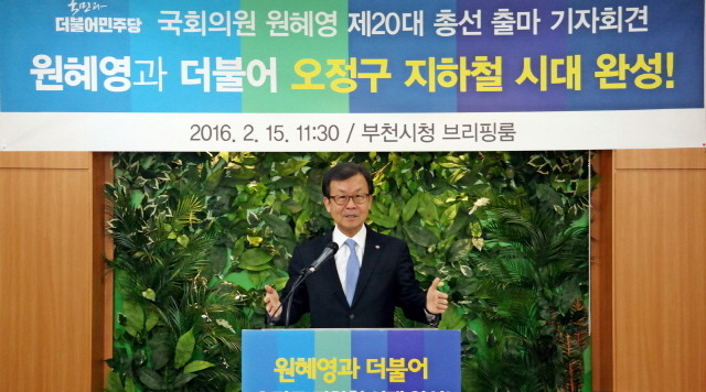 저 원혜영은 부천시장 시절, 서울 지하철 7호선을 부천까지 연장 유치하여 부천의 지하철 시대를 열었습니다. 또한 국회 예산결산위원장 시절 소사-오정구-일산 지하철 사업을 최종적으로 확정한 바 있습니다.