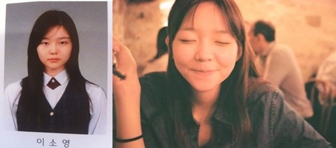 사진 속 이솜은 교복을 입고 카메라를 응시하며 졸업사진을 촬영하고 있다.