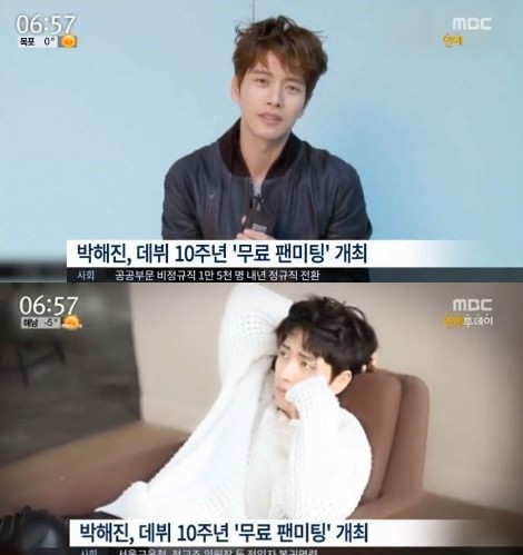 박해진은 최근 MBC '연예투데이'를 통해 데뷔 10주년을 맞이해 무료 팬미팅을 개최한다고 밝혀 팬들의 기대감을 높였다.