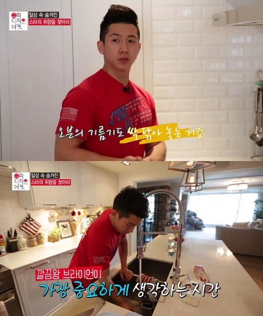 연예계 대표 청소 마니아인 브라이언은 식사 후 설거지는 물론, 오븐과 가스레인지 기름때도 놓치지 않고 닦아 내는 모습을 보여 그의 변함없는 깔끔한 성격을 입증했다.