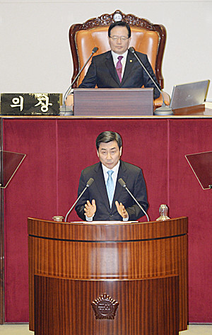 이종걸 더불어민주당 원내대표가 17일 오전 서울 여의도 국회에서 열린 본회의에서 교섭단체 대표연설을 하고 있다.