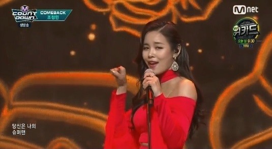 가수 조정민이 18일 오후 방송된 Mnet ‘엠카운트다운’에서 신곡 ‘슈퍼맨’의 컴백 무대를 선보였다.