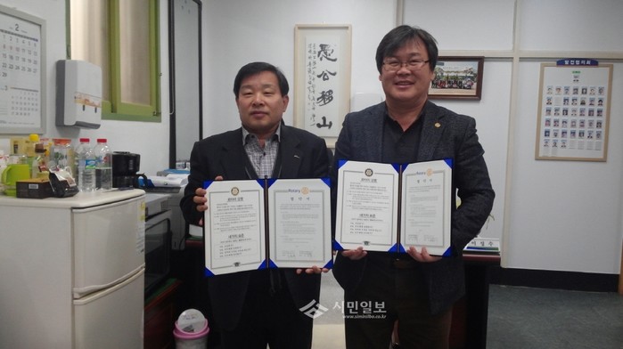 지난 19일 경북 구미시 상모사곡동 주민센터는 국제로타리클럽3630지구 구미금오로타리클럽과 봉사 협약식을 열었다. 사진은 행사에 참석한 관계자들이 기념촬영을 하는 모습.(사진제공=구미시청)