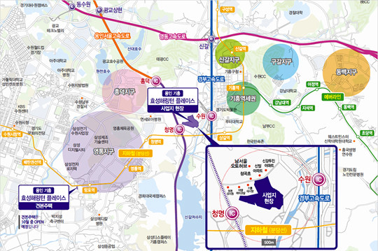 수원 삼성전자와 기흥, 화성 삼성반도체 등 대규모 산업단지와 기흥호수공원이 인근에 위치한 ‘용인 기흥 효성해링턴 플레이스’는 수원IC 바로 앞에 위치하여 수원 영통지구와 기흥역세권의 양쪽 편의시설을 모두 이용할 수 있으며, 다양한 개발 호재의 직접 수혜 단지로 미래가치가 높게 평가되고 있다.