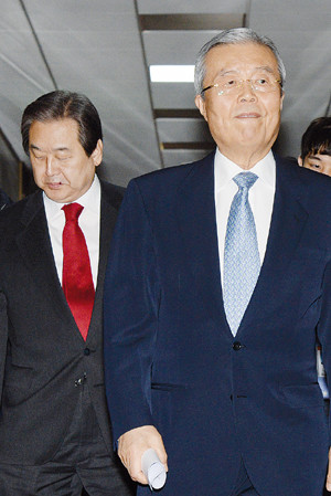 선거구획정과 테러방지법 통과를 위해 23일 오전 정의화 국회의장을 만난 새누리당 김무성 대표와 더불어민주당 김종인 비대위 대표가 심각한 표정으로 의장실을 나오고 있다.