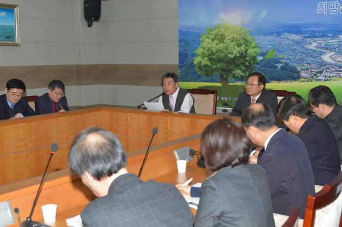 지난 22일 경기 동두천시는 시청 상황실에서 오세창 시장 주재로 부시장, 국장 및 부서장 등 30여명이 참석한 가운데 민선6기 시장 공약사항 추진상황 보고회를 개최했다. 사진은 오 시장(가운데)이 발언하는 모습.(사진제공=동두천시청)