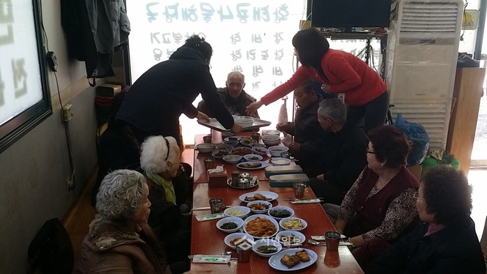 지난 23일 경기 동두천시 상패동 주민자치위원회는 ‘착한 식당’으로 지정된 오가네식당에서 지역내 홀몸노인들을 초대해 정성껏 마련한 점심을 제공하는 행사를 진행했다.(사진제공=동두천시청)