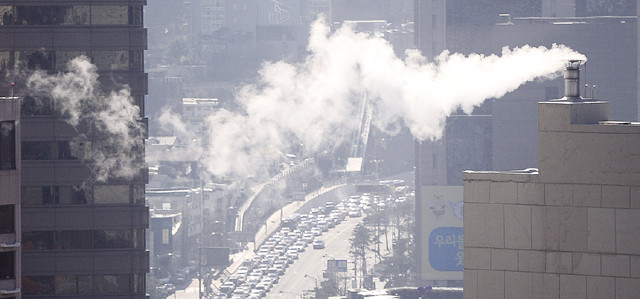 체감온도가 영하10도까지 내려가는 꽃샘추위가 찾아온 24일 오전 서울 중구 도심속 빌딩에서 난방으로 인한 수증기가 뿜어 나오고 있다.