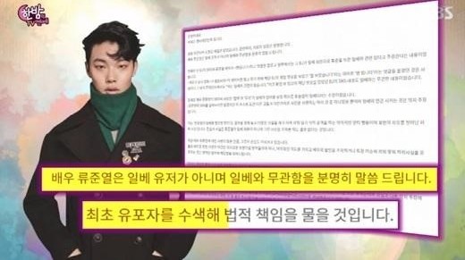한편 류준열 소속사 씨제스엔터테인먼트 관계자는 24일 "본인에게 확인한 결과 절대 아니라고 했다"라며 "악의적 상황이 반복될 시 단호하게 대응할 생각이다"라고 밝혔다.