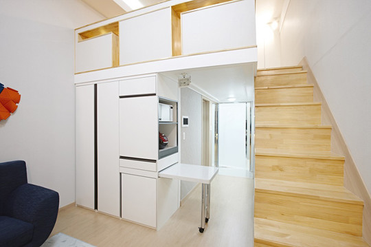 소형오피스텔은 효율적인 공간활용으로 거주자 중심의 인테리어가 중요하다. 인텔스테이는 풀 옵션 가전제품을 비롯해 층고를 이용한 수납장, 공간 활용 전자렌지함 등 짜임새 있는 공간 활용이 돋보인다. 현 오피스텔 추세를 본다면 복층이 젊은이들은 물론 젊은 직장인들에게 인기가 높다.