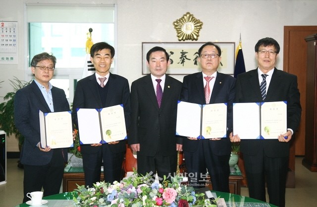 | ▲ 임춘대 서울 송파구의장(가운데)이 2015 회계연도 결산검사위원으로 선출된 관계자들과 기념촬영을 하고 있다. | ||