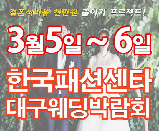 대구웨딩박람회는 매년 1000명의 예비신랑신부가 모이는 대형 웨딩행사다. 올해에도 대구. 경북에서 최대 규모의 행사로 결혼을 앞둔 예비신혼부부 등 수많은 인파가 몰릴 것으로 예상된다.