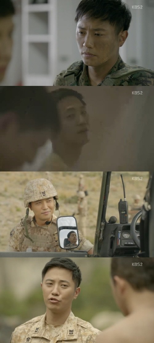 파병을 가서도 서대영과 유시진의 티격태격 케미는 계속됐다. 독단적인 판단과 결정으로 박병수(김병철 분) 중령의 질책을 받게된 유시진은 "부팀장이 나를 적극적으로 말리지 않았다"고 서대영을 끌어들여 말해 함께 얼차려를 받게 됐다.