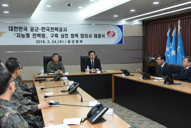 [시민일보=여영준 기자]한국전력 조환익 사장과 공군참모총장 정경두 대장은 지난 24일 오전 11시30분 충남 계룡시 소재 계룡대 공군본부에서 '공군 지능형전력망 구축 사업' 수행을 위한 합의서를 체결했다.