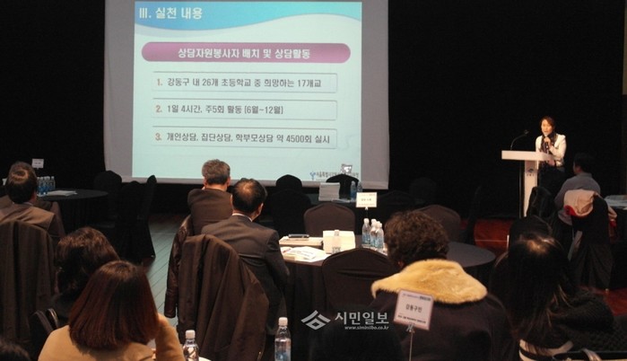 최근 서울 강동구와 강동송파교육지원청은 강동아트센터에서 ‘2016 서울형혁신교육지구 실무추진협의회’를 개최했다. 사진은 협의회가 진행 중인 모습.(사진제공=강동구청)