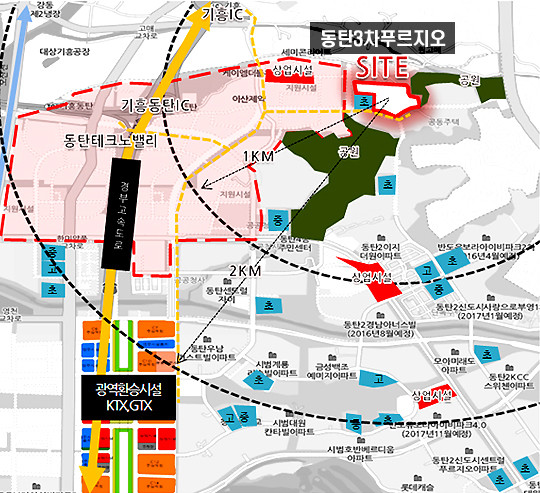 ‘동탄2신도시 3차 푸르지오’는 인근에 삼성전자 반도체 공장과 비즈니스·산업단지가 위치하고 있으며, 동탄2신도시 특별계획구역으로 첨단산업·연구·벤처기업이 복합된 산업클러스터로 조성되는 동탄테크노밸리가 인근에 위치하여 풍부한 배후수요를 갖추고 있다.