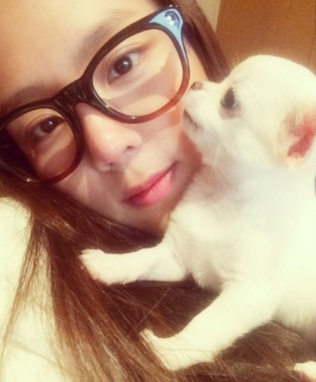 예원은 공개된 사진 속에서 화장기 없는 얼굴에 두꺼운 뿔테 안경을 끼고 강아지를 안고있다. 예원의 깨끗한 피부와 또렷한 이목구비가 돋보인다.