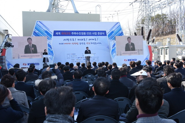 [시민일보=여영준 기자]한국전력은 지난 25일 오후 3시 경상북도 경산시 경산변전소에서 세계최대 규모 주파수조정용 ESS(Energy Storage System) 구축을 축하하는 준공식을 개최했다.