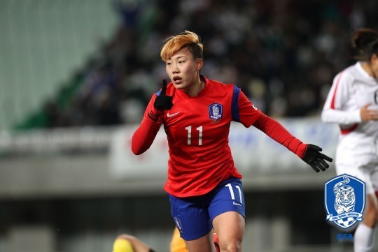 이날 한국은 최전방에 정설빈을 두고 2선에 이금민, 장슬기, 지소연, 이민아가 배치됐다. 수비형 미드필더엔 캡틴 조소현이 섰고 포백은 김수연, 황보람, 김도연, 서현숙이 포진했다. 골문은 A매치 100경기 출전을 달성하는 김정미가 지켰다.