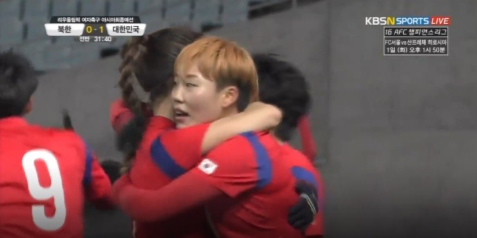 대표팀은 후반 33분 첫 골을 어시스트한 이민아를 빼고,이영주를 투입했다. 이후 후반 34분 북한 김은주에게 동점골을 허용했다. 선수 교체 직후 실점이 나와 아쉬움이 남는 순간이었다.