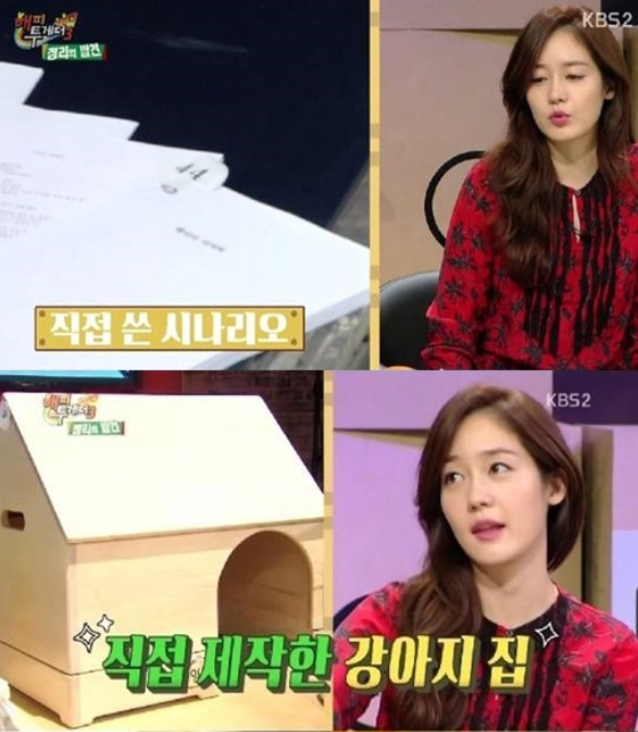 성유리는 "취미로 시나리오를 쓴다. 글을 쓰는게 나에게 힐링이 된다"고 밝혔다. 이어 "나무 공방에 가서 목공일도 한다"면서 직접 만든 애완견 집을 선보여 MC들과 시청자들을 감탄케했다.