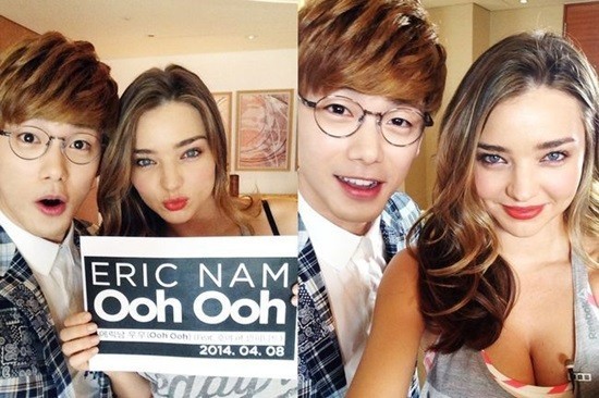 공개된 사진 속 에릭남과 미란다 커는 다정 포즈를 취하며 친분을 과시했다. 특히 미란다 커는 당시 에릭남의 신곡 '우우'을 함께 홍보를 해주어 눈길을 끌었다.