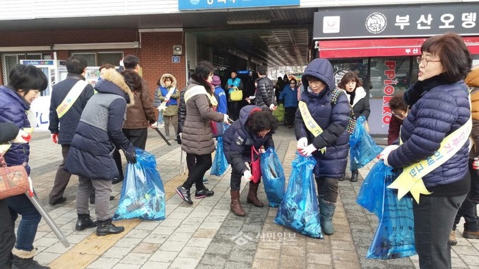 최근 경기 안산시 본오3동은 직능단체·유관기관 등 100여명이 참여한 가운데 상록수역 및 상가지역을 중심으로 기초질서 지키기 및 청렴실천 합동 캠페인을 대대적으로 펼쳤다. 사진은 관계자들이 쓰레기를 줍는 모습.(사진제공=안산시청)