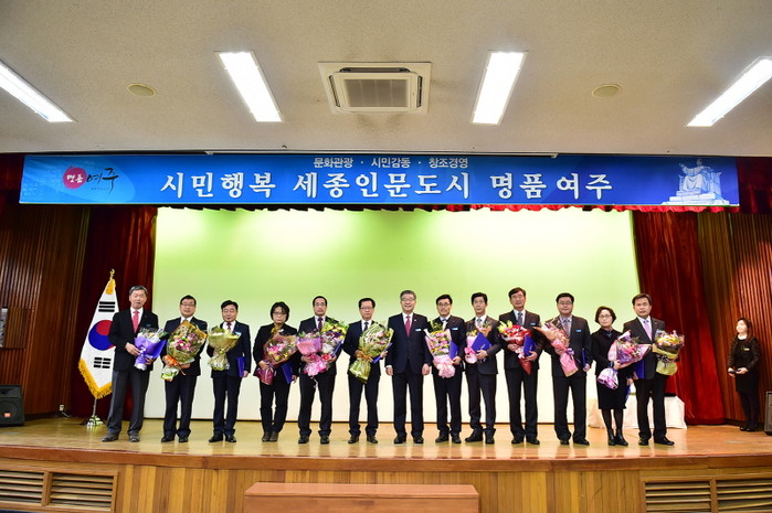 지난 2일 경기 여주시는 40개 전부서에 대한 2015년 동안의 성과를 평가하는 '2015년 성과관리 종합평가' 시상식을 개최했다. 사진은 원경희 시장(가운데)과 수상자들이 기념촬영을 하는 모습.(사진제공=여주시청)