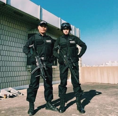 공개된 사진 공개된 사진에는 건물 옥상에 나란히 선 조재윤과 조윤희가 특공대 복장을 갖춰 입고 비장한 표정으로 카메라를 응시하는 모습이 담겨있다.
