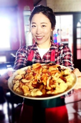 이미도는 사진 속에서 먹음직스러운 탕수육을 들고 환한 미소를 짓고있다.