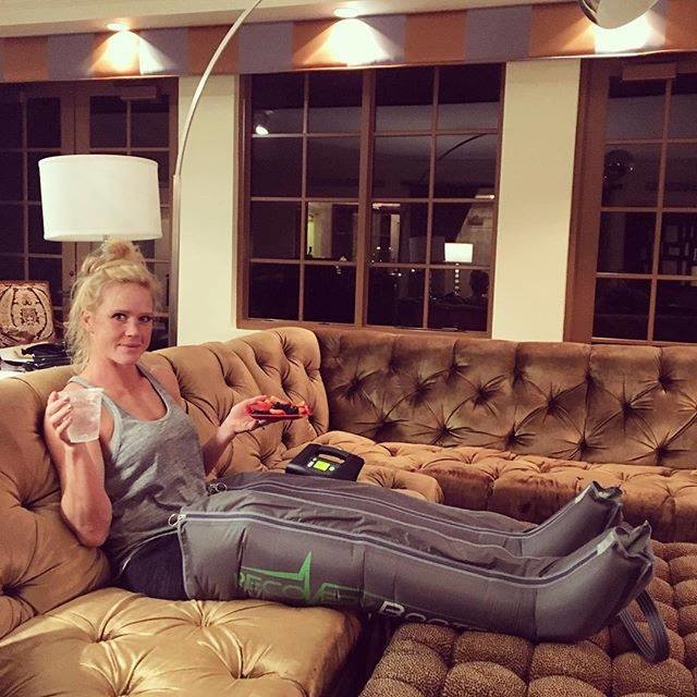 해당 사진 속에는 그가 소파에 앉아 압박부츠를 신고 다리의 붓기를 풀고있는 모습이 담겨있다.