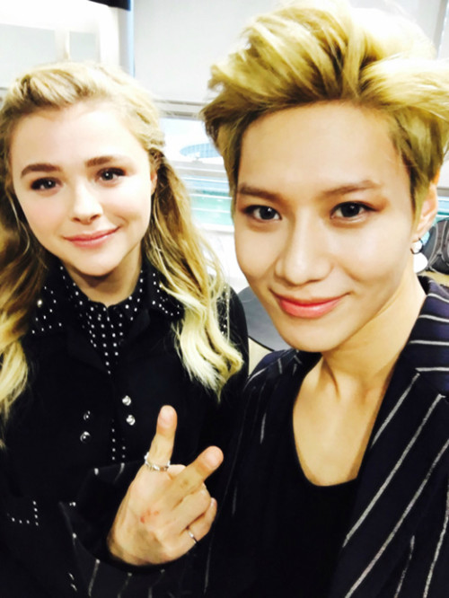SM타운 글로벌 공식 트위터에는 최근 "태민을 찾아온 깜짝 손님 클로이 모레츠 반가워요~"라는 글과 함께 사진을 게재했다.