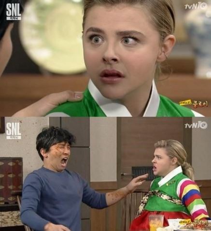 한국 막장드라마를 한 데 모아놓은 듯한 콩트 속에서 클로이 모레츠는 능청스러운 코믹연기로 웃음을 자아냈다.