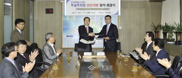 | ▲ 서대문구가 추진하는 '주택가 소규모 주차장 조성' 3종 지원사업 중 하나인 '부설주차장 야간개방을 위한 업무협약식' 모습. | ||