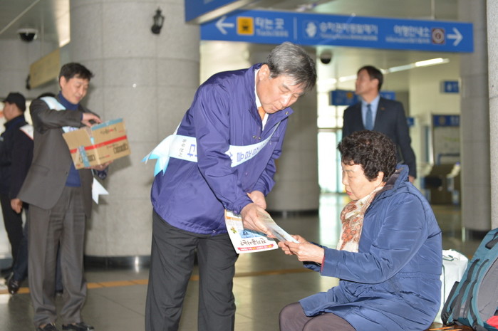 최근 경기 동두천시는 지행역 앞 광장에서 안전총괄과, 동두천소방서, 지역자율방재단 등 50여명이 참여한 가운데 '해빙기 재난예방' 제240차 안전점검의 날 캠페인을 실시했다. 사진은 오세창 시장이 시민에게 전단을 배부하는 모습.(사진제공=동두천시청)