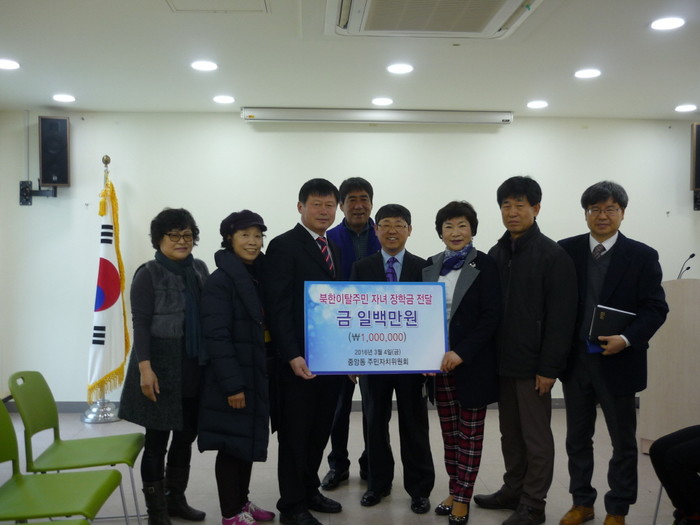 오산시 중앙동, 북한이탈주민에 장학금 전달