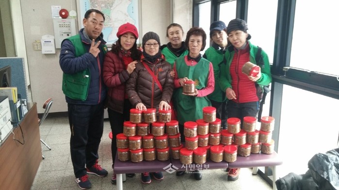최근 경기 의정부시 신곡1동 새마을부녀회는 동주민센터 옥상에서 자체적으로 담근 된장 50통을 지역내 저소득 노인들에게 전달하는 행사를 실시했다. 사진은 관계자들이 기념촬영을 하는 모습.(사진제공=의정부시청)