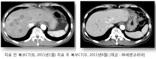 종양표지자(CA-19-9) 수치가 9개월 만에 18만에서 0에 가깝게 개선이 됐고 간에 다발성으로 전이된 종양도 거의 사라져 버렸다. 지난 2011년 6월에 종양이 남아 있는 췌장 말단을 제거하는 수술을 받게 됐고 현재까지 건강하게 일상생활을 하고 있다.
