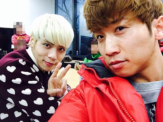 사진 속 유세윤과 종현은 미소를 지어 카메라를 응시하고 있다. 두 사람의 비슷한 이목구비가 보는 이들의 시선을 사로잡는다.