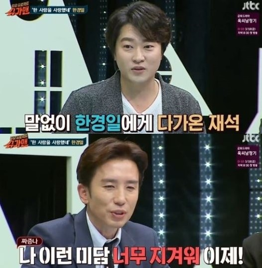 이날 한경일은 자신의 과거 이야기를 전했다. 그는 "미팅 프로그램도 했었고, 연예 정보 프로그램 리포터로 활동도 했었다"며 "유재석 씨가 여기서 유일하게 함께 방송을 해본 분이다. 같이 음식 먹는 프로그램을 했었다. 그 때 친한 사람이 없어서 혼자 쉬는데 유재석 씨가 다가와서 '힘들지'라고 말해줬다. 그 얘기를 만나는 사람마다 전하고 있다"라고 유재석의 미담을 전했다.