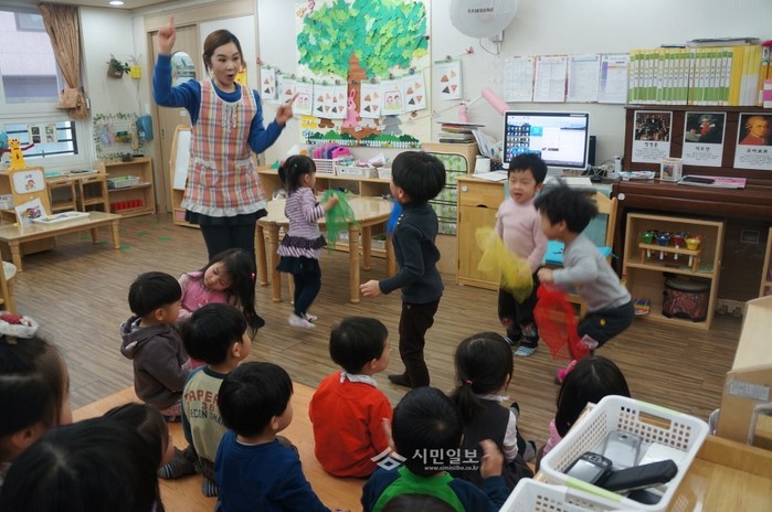 | ▲ 구청 어린이집에서 보육교사가 어린이들을 교육하는 모습. | ||